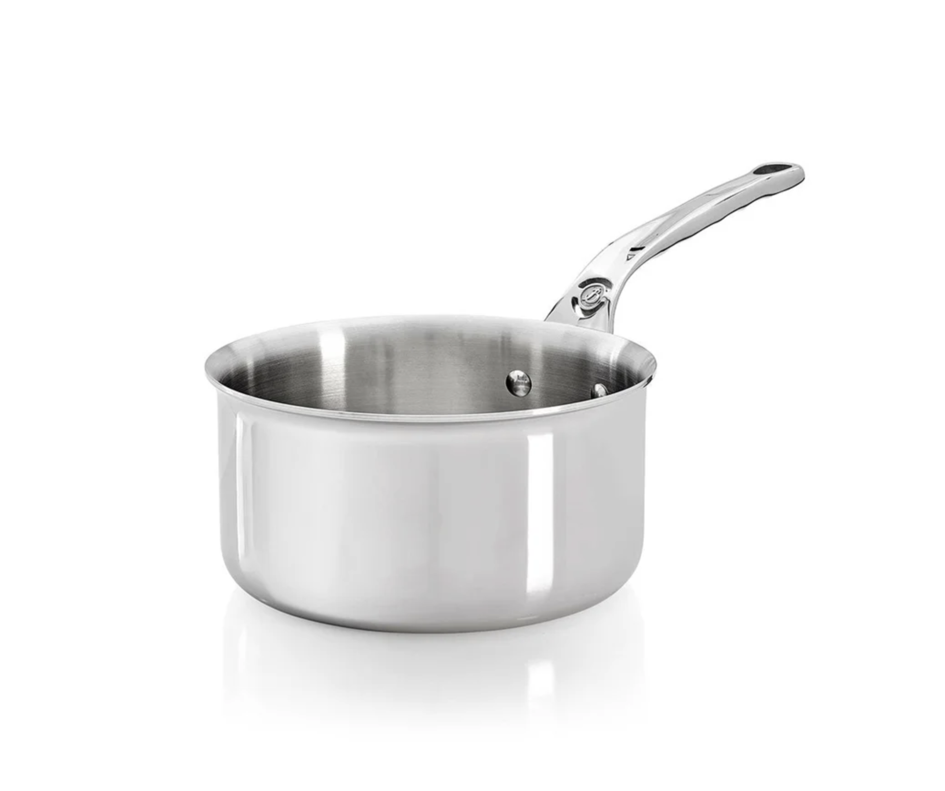 Combining a luxurious look with trustworthy durability, the de Buyer Affinity collection is made from layered, 5-ply stainless steel with an aluminum core. Not only does this offer exact temperature control as it's highly reactive to changes in heat, but it also is a fantastic conductor for simple and even heating. This sauce pan, like every other piece in the Affinity collection, even features de Buyer's signature ergonomic, riveted French handle that is built with a heat stop design so it stays cool during cooking. Low maintenance and easy to clean, each item in this line also boasts a mirror polish exterior finish.