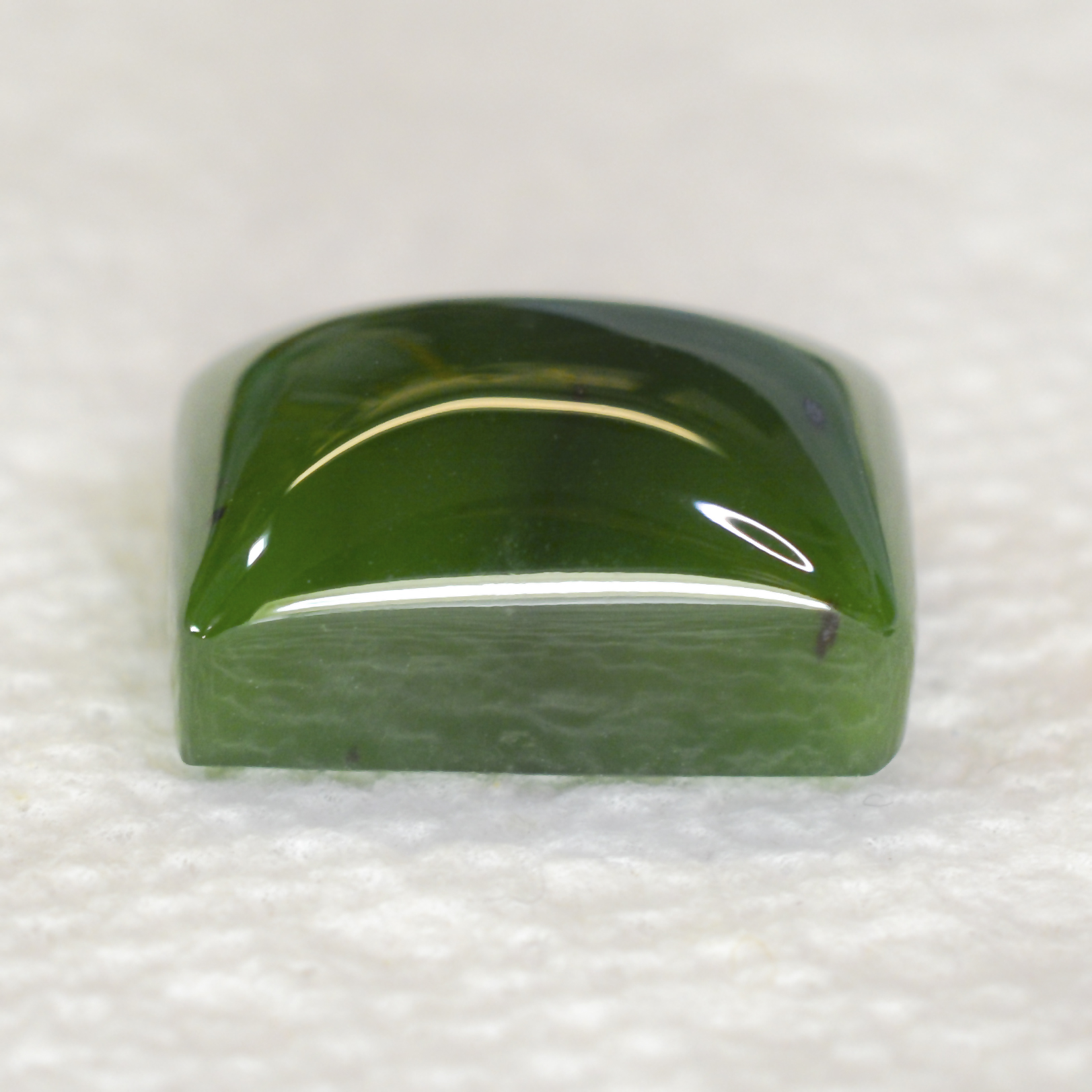 Here for your consideration is an exceptional Siberian Nephrite Jade Cabochon. This very scarce material has an impeccably hard, tight grain, and exhibits a lovely bright, deep glowing green that is typical with quality Siberian Nephrite. Stunning near fluorescent translucency. It is a very difficult material to mine as it comes from a very cold and very remote area of Russia.